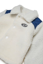 Jacket made from a mix of materials that best expresses Diesel style. The shiny fabric insert creates a dynamic contrast with the softness of the teddy. Perfect for facing the colder season with personality.