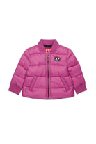 Short padded jacket with horizontal quilting ideal for mid-seasons. Applied heart-side Oval D patch adds a distinctive detail.