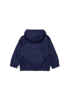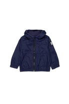 Windbreaker with printed logo on the sleeve, fixed hood, and front zipper.