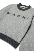 Crew-neck, long-sleeved, wool-blend cashmere sweater with ribbed colorblock cuffs, hem and collar. Features a contrasting Marni Institutional logo on the front.A stylish touch suitable for the most special occasions.
