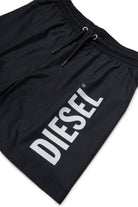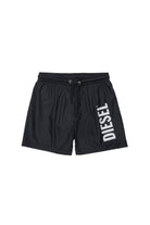 Boxer swim trunks with contrasting logo and elastic waistband.