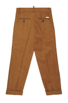 Chino pants with logo, front crease, and cuffed hem.