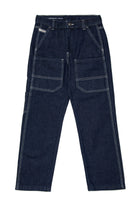 Regular jeans with contrasting stitching and large patch pockets on the front.
