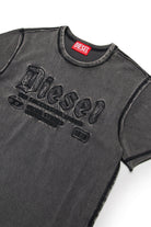 Short-sleeved T-shirt in soft cotton jersey embellished with a gothic-style Diesel For Successful Living graphic. The worn-effect wash and raw-cut hems enhance the garment's grunge soul.