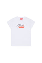 Cotton jersey T-shirt with glittery cursive logo superimposed on the Diesel for successful living logo.