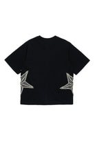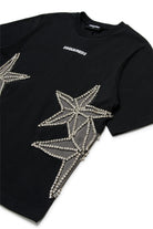 Short-sleeved crew-neck T-shirt in cotton jersey. Features mesh stars with hand-finished crystals. Dsquared2 logo in contrasting colour on the front.