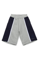 Fleece shorts with elasticated waist. Colorblock details and contrasting piping. Institutional logo on the front. Front slash pockets. Made of 100% cotton. A sports-inspired garment suitable for various occasions.