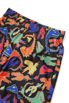 Boxer swim shorts with logo and all-over stylized dinosaur print. A lively piece designed for beachwear.