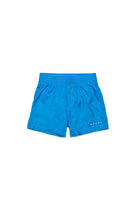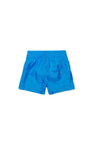 Boxer swimsuit with logo, featuring a patch back pocket and contrast stitching.