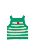 Sleeveless knit top in 100% cotton with striped pattern and logo label on the back.