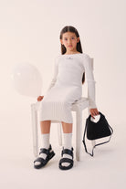 Long dress with logo and ribbed detailing. The design features a clean silhouette and straight lines for a modern look.