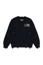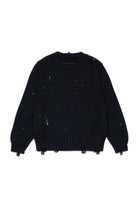 Crew neck pullover in 100% cotton with contrasting painted-effect design.