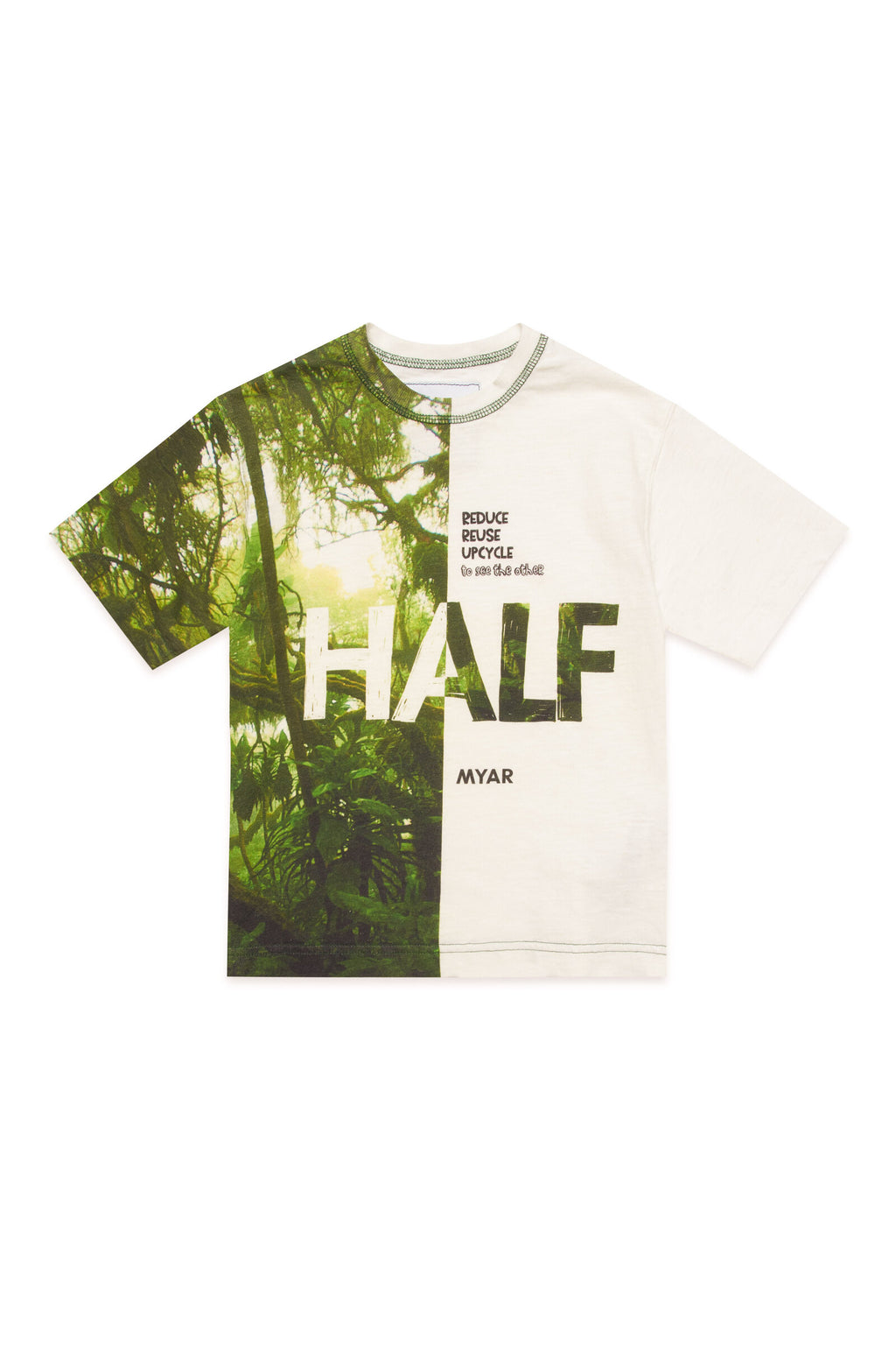 Bargains not to be missed at the Brave Kid Outlet: clothing from the MYAR collection for children and teens ages 4 to 12 at unbeatable prices. Embrace the vision of Andrea Rosso's brand, which uses a creative upcycling process to give new life to fabric scraps and remnants, dressing the new generation with ideals for a more responsible and sustainable future. From colorful and very comfortable jackets and puffer jackets to gritty jogger pants in solid colors or with the iconic camouflage pattern: within our MYAR garment selection you can find everything you need to comfortably dress your Brave Kid. Let yourself be captivated by sweatshirts and t-shirts decorated with prints, graphics and illustrations that aim to raise awareness of environmental friendliness and enhance from collection to collection a theme related to the world of sustainability and upcycling. The garments in the MYAR collections are a perfect mix of the military, sportswear and streetwear worlds and are ideal for creating practical but always fashionable outfits, perfect for school and leisure.