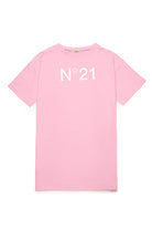 Crew-neck short-sleeved cover-up dress in jersey. N°21 Institutional logo in contrasting color on the front. Side splits. Made of 100% cotton.