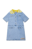 Short denim dress with logo and contrasting knitted collar