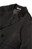 Satin double-breasted blazer jacket. Oversize fit. Pocket decoration on the front. Label N°21 on the sleeves. Lined inside. A perfect garment for ceremonies and special occasions.
