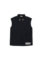 Sleeveless shirt with logo and jewel details on the collar, patch pocket, and embroidered patch at the hem