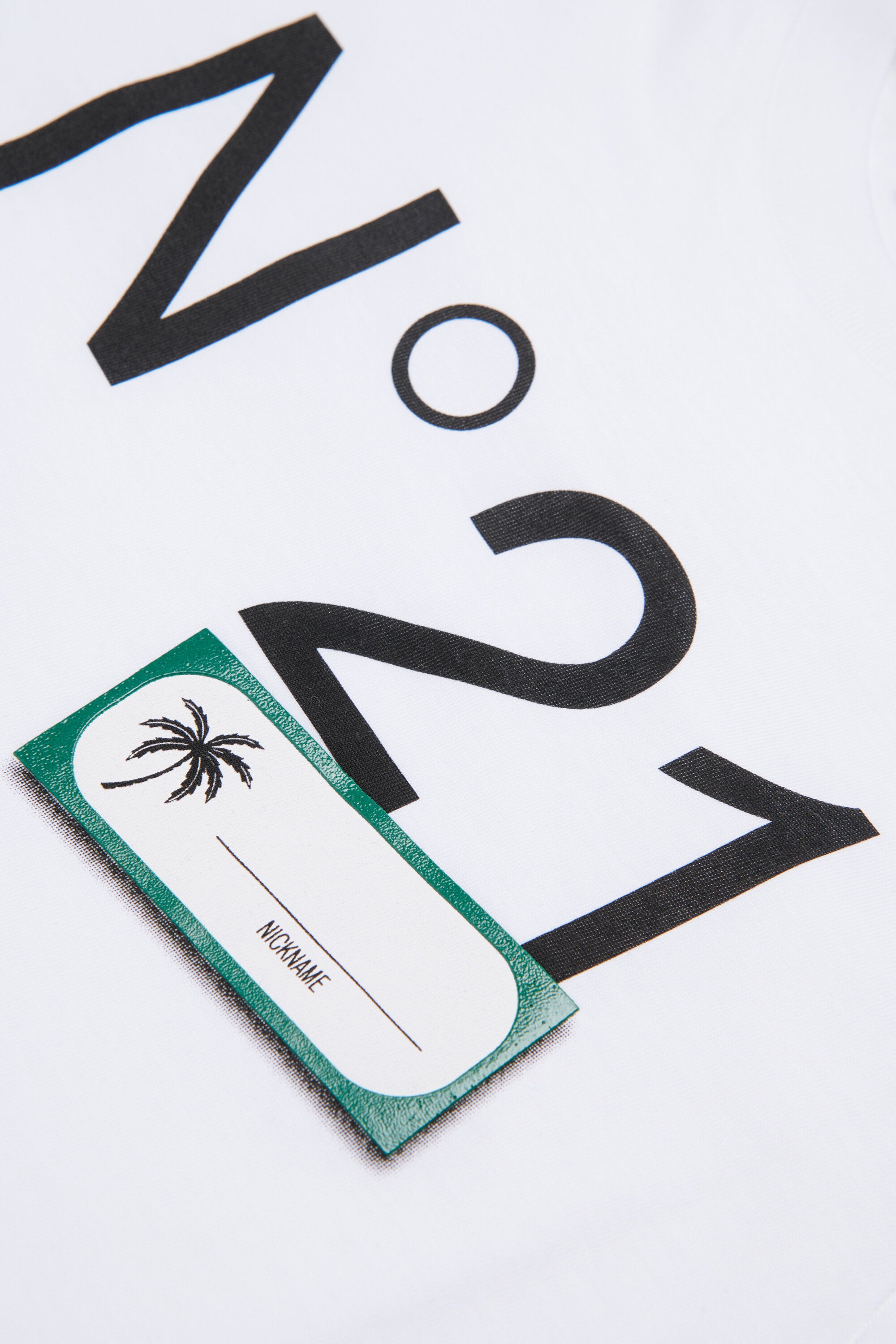Classic white N°21 T-shirt, made unique by the option to customize the front label with your nickname. Crafted from soft, comfortable cotton, it offers a premium feel and everyday versatility—perfect for running, playing, and expressing your style with personality.