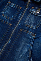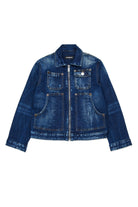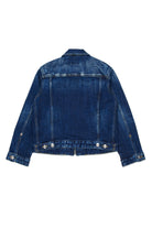 Denim jacket with printed logo, featuring front pockets and washed details for a unique style