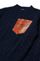 Crew neck pullover in 100% cotton featuring a cable knit design and an applied pocket with a maxi patch-effect logo on the chest.