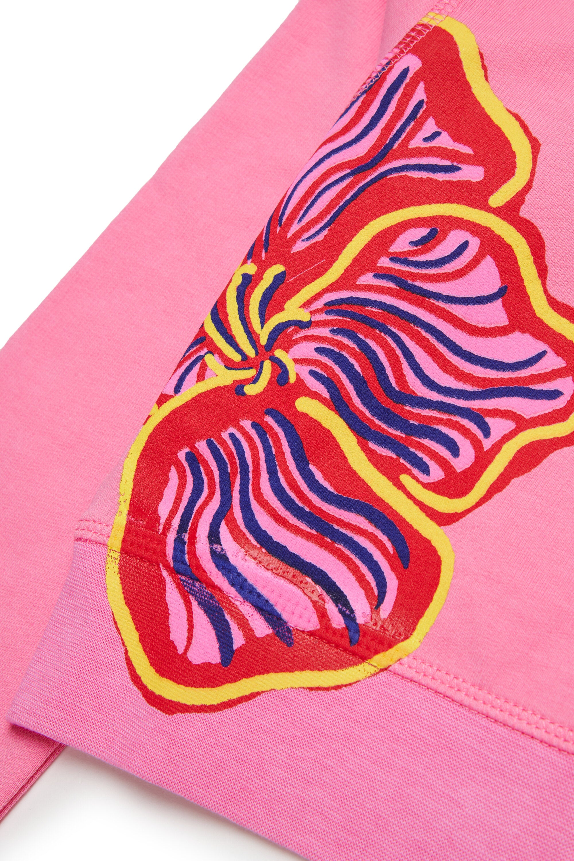 Fully zipped sweatshirt with logo and contrasting floral print. The piece stands out for its cropped cut and high neck.