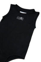 Sleeveless bodysuit made of stretch cotton jersey. Numeric logo in contrasting color on the front. Practical snap-button opening along the crotch. Iconic seam at back.