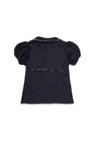 Denim shirt dress with logo on the chest and contrast stitching details. The design features feathered short sleeves and a rounded collar for a refined and contemporary look.