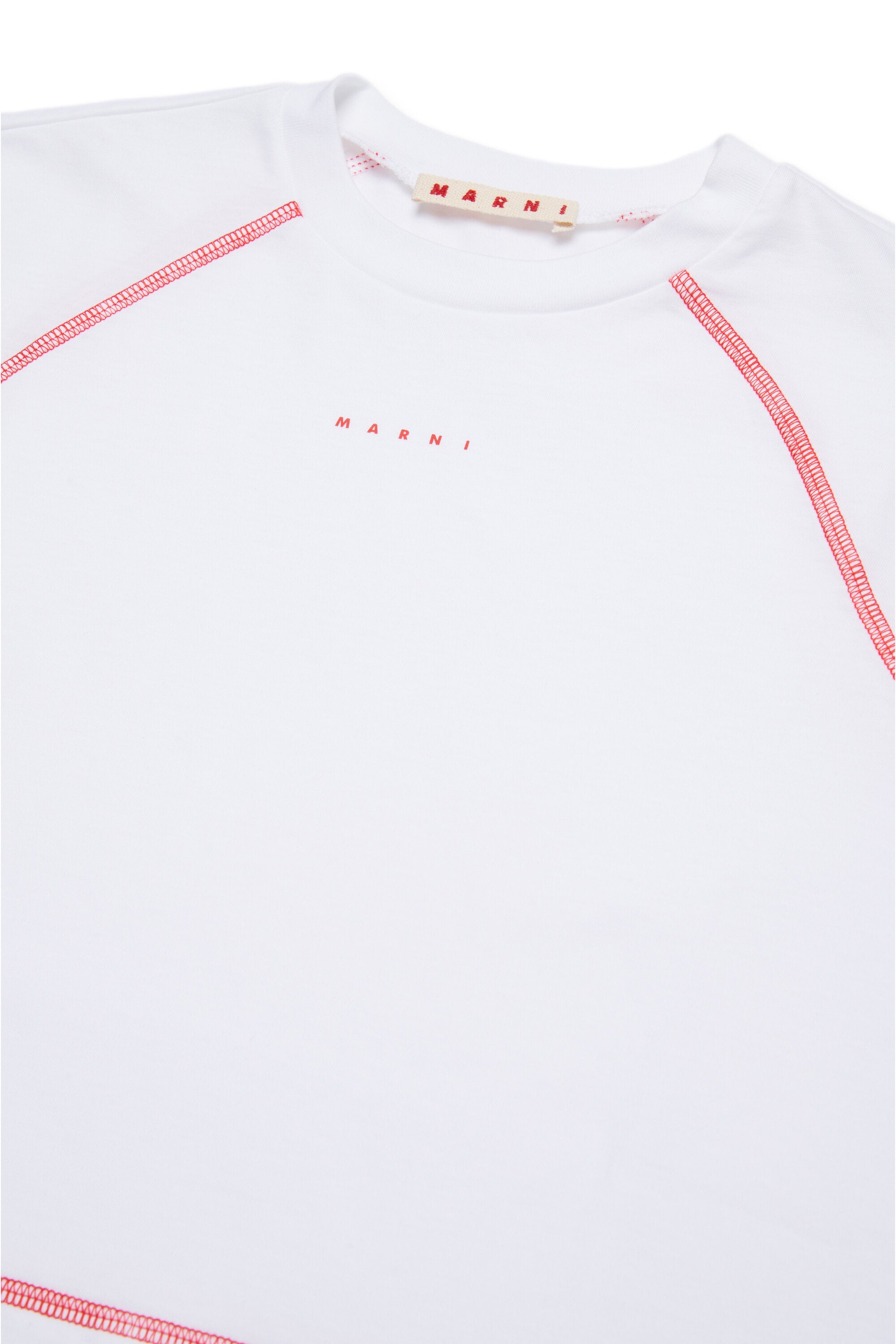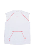 Crew-neck sleeveless cover-up dress in jersey. Features a contrasting color Marni institutional logo on the front. Pouch pocket. Contrasting color contrast overlock seams. Made of 100% cotton.