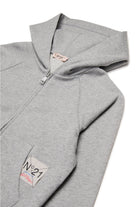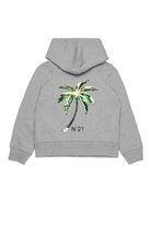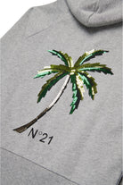 Long-sleeved hooded sweatshirt. It features a sequined palm tree on the back accompanied by the N°21 Institutional logo. Label N°21 inserted at one of the front pockets. Ribbed construction on cuffs and hem. Made of 100% cotton.