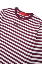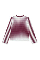 Long-sleeved T-shirt in striped micro ribs, made of yarn-dyed cotton. A mix of colors that enhances and enhances the rubberized effect logo printed on the front.