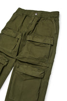 Garment-dyed gabardine cargo pants. Velcro closure pockets add a practical and dynamic detail, making them ideal for a casual look.