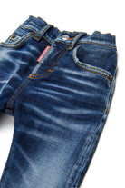 Dark blue shaded slim fit jeans with small abrasions. It has a slim fit all the way down the leg. Practicality and style meet in a denim designed to accompany every moment of the day with personality.