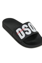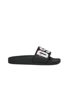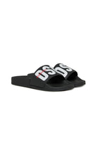 Slide sandals with contrasting logo. A perfect style to complete summer looks.