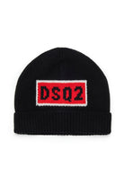 Wool-blend beanie with logo DSQ2 in contrasting color on the front. A warm accessory that adds personality to everyday looks thanks to the iconic Dsquared2 imprint.
