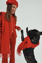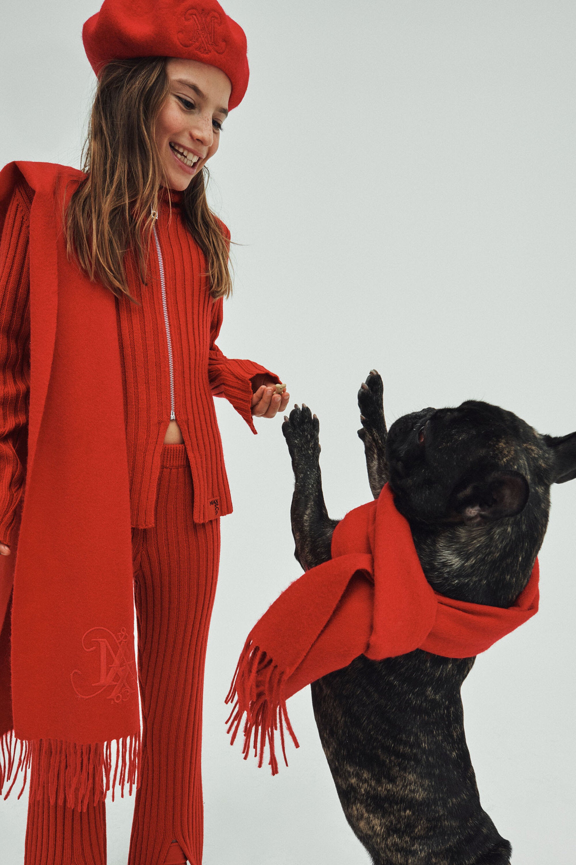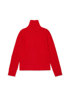 High-necked cardigan in ribbed wool-blend knit. Warm and practical with a front zipper closure, it is enhanced by a patch and a front slit that lightens the line.
