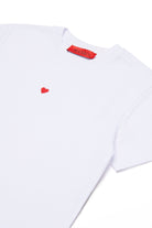 Soft cotton jersey T-shirt with short sleeves and a slightly cropped fit. Heart-shaped embroidery adds a delicate detail, perfect for casual looks.