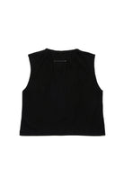 Cropped sleeveless jersey T-shirt. Gathers at the collar along the garment. Numeric logo on the bottom in color tone. Iconic seam at back. Made of 100% cotton. Made in Italy.