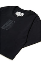 Cropped crew-neck T-shirt in short-sleeved jersey. Institutional logo in color tone on the front. Iconic seam on the back. Made of 100% cotton.