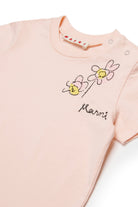 T-Shirt aus 100% Baumwolle mit Logo und Blumenstickerei. Ein praktisches Kleidungsstück mit farbigen Details, ideal für lebendige Looks.