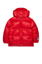 Kurze wattierte Jacke mit asymmetrischem Unterteil. Das moderne und praktische Design verleiht dem Kleidungsstück einen zeitgemäßen, alltagstauglichen Look. Ein Winterkleidungsstück, perfekt für alle, die Stil und Funktionalität suchen.