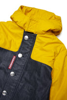 Wasserdichter Trenchcoat mit Colorblock-Effekt, bei dem technisches Gewebe auf behandelten Denim trifft, um einen modernen und funktionellen Look zu erzielen. Ein Kleidungsstück, das der Saison mit Charakter begegnet und dabei praktisch und stilvoll ist.