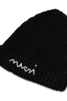 Gerippte Strickmütze aus einer Wollmischung, mit handgefertigtem Marni Logo in Kontrastfarbe auf der Vorderseite. Die weiche und warme Mütze ist das ideale Accessoire, um die kalte Jahreszeit mit Stil und Komfort zu überstehen.