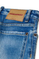 Boss 10 five-pockets Jeans mit gerader Passform. Aus mittelblauem Denim, der sich durch Farbverläufe und Whisker in Kontrastfarben auszeichnet. Risse und Abschürfungen auf der Rückseite. Dsquared2-Label auf der Lasche (Flaggenlogo).