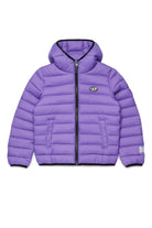 Steppjacke mit aufgedrucktem Logo und fest angenähter Kapuze. Das gesteppte Design unterstreicht den modernen Look.