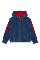 Langärmeliger Kapuzenpullover aus beflocktem Neopren mit Dsquared2-Logo und kontrastierenden Details an den Ärmeln. Der technische Stoff und die klaren Linien machen ihn perfekt für die Freizeit und die Stadt.