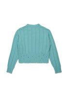 Langärmeliger Pullover mit Rundhalsausschnitt und Rippenstrick aus einer Wollmischung. Lokalisierte Brüche am Hals, an den Ärmeln und an der Unterseite verleihen ihm einen getragenen und authentischen Effekt. Perfekt, um jedem Look Charakter zu verleihen, auch für besondere Anlässe.