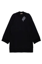 Kurzes Sweatshirt-Maxikleid mit ausgestellter Form. Minimalistisch im Design, zeichnet es sich durch ein ikonisches Detail aus: das kursive Logo, das auf der Vorderseite in kontrastierender Farbkordel angebracht ist. Ein unverwechselbares Element, das einen coolen und wiedererkennbaren Touch verleiht.