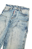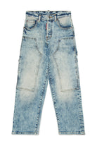 Loose Fit five-pockets Jeans. Aus hellem Denim, der sich durch einen gebleichten, marmorierten Effekt mit Farbverläufen und Schnurrhaaren in Kontrastfarben auszeichnet. Das Design zeichnet sich durch sichtbare ergonomische Nähte aus. Dsquared2-Label auf der Lasche (Flaggenlogo).