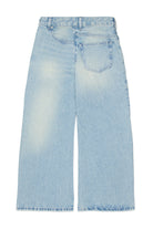 Regular-Jeans aus hellblauem Denim. Das Modell verfügt über eine Five-Pocket-Silhouette und eine charakteristische, ikonische Naht auf der Rückseite.
