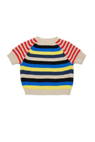 Pullover mit Rundhalsausschnitt aus 100% Baumwolle mit Logo und mehrfarbigem Streifenmuster. Kurzarm-Modell mit Rippstrickabschlüssen an Saum, Kragen und Bündchen.